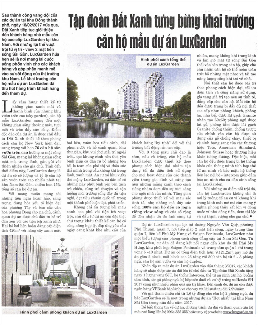 Đất Xanh tưng bừng khai trương căn hộ mẫu Luxgarden